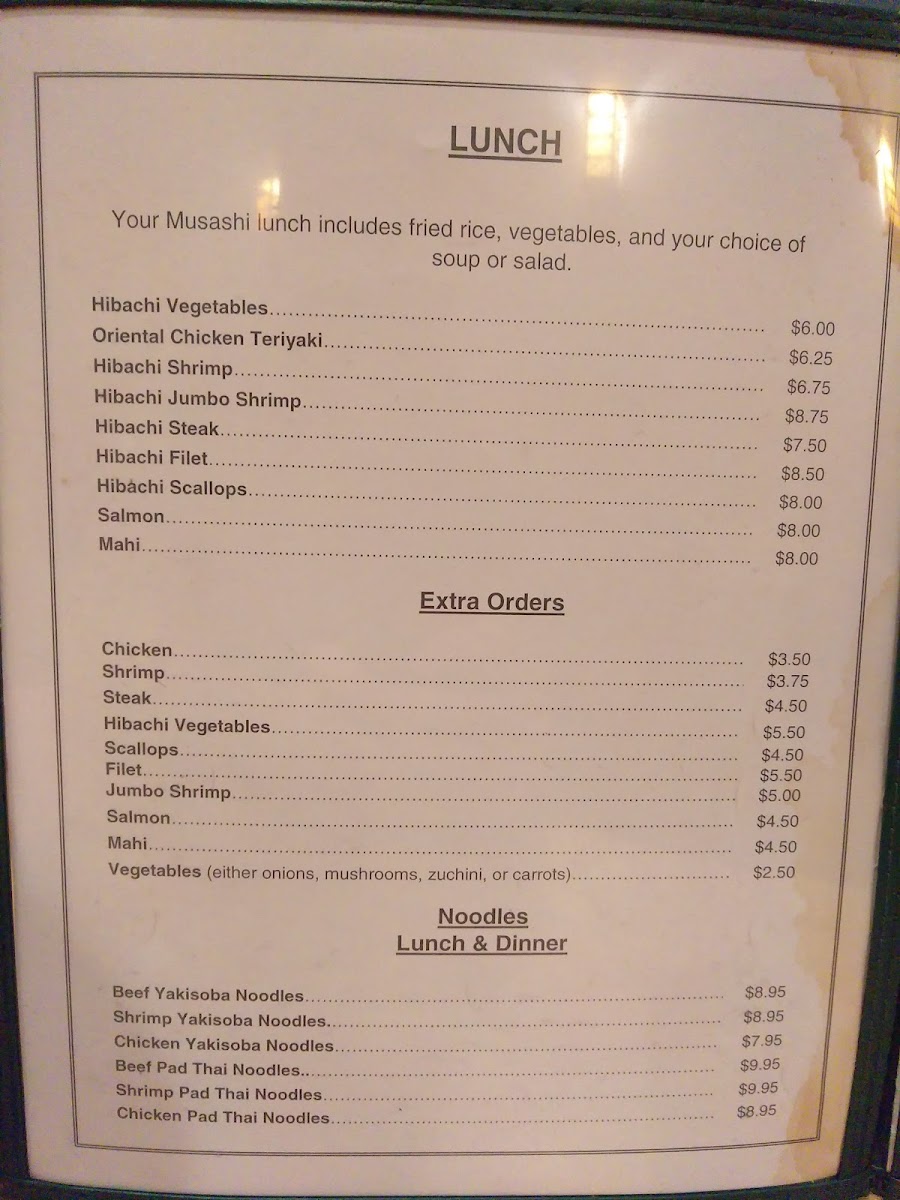 When you step into Musashi Japanese Steak-Seafood, you’re in for a delightful culinary experience that blends traditional flavors with a modern twist. The menu offers a diverse range of dishes, with options to satisfy every craving. Whether you’re in the mood for perfectly grilled steak, fresh seafood, or flavorful hibachi-style cooking, there’s something to suit every taste. Each dish is prepared with high-quality ingredients and expertly cooked to bring out the full depth of flavor.
